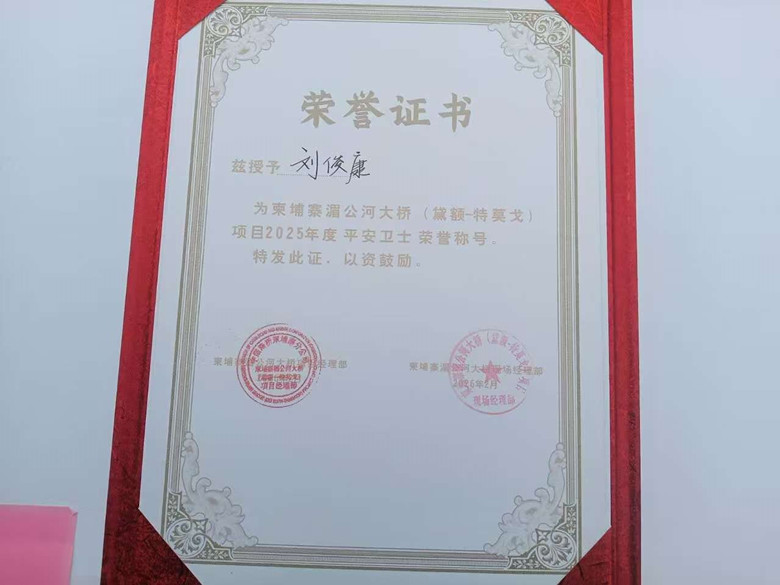 • 基礎(chǔ)公司柬埔寨湄公河大橋項(xiàng)目榮獲甲方好評(píng) 員工劉俊康獲評(píng)“安全衛(wèi)士”